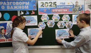 Президентом РФ Владимиром Путиным 2025 год объявлен в России Годом Защитника Отечества в память обо всех героях, которые сражались за Родину в разные исторические периоды, а также о тех, кто отстаивает интересы России сейчас, во время специальной военной операции. Очередное занятие из цикла «Разговоры о важном» было посвящено проведению в нашей стране Году Защитника Отечества. Педагоги напомнили школьникам о традициях празднования дней воинской славы России, великих сражениях прошлого, определивших судьбу нашей страны, и о людях, которые своими усилиями приближали победы. Занятия прошли в формате познавательной беседы с интерактивными элементами. Учащимся показали видеоинтервью с ветераном Великой Отечественной войны Константином Федотовым и Героем России, участником спецоперации Николаем Соколовым.