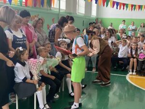 1 сентября, как и во всей стране в нашей школе праздник! Красивые и нарядные дети с букетами цветов, педагоги, родители снова собрались на первой праздничной линейке в этом учебном году! Тёплые слова поздравления и пожелания успехов сказали директор школы Ирина Александровна и исполняющая обязанности начальника отдела по вопросам семьи и детства МО Староминский район Юлия Валерьевна Измайлова. Сказочные герои Пятачок и Вини Пух поздравили первоклассников и всех присутствующих с началом учебного года и вручили малышам подарки . После линейки всех учащихся школы педагоги пригласили на Всероссийский урок ОБЖ, где напомнили основные правила поведения при ЧС, а так же пожелали ребятам чтобы новый учебный год стал для них ярким, безопасным, плодотворным и интересным!