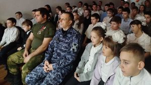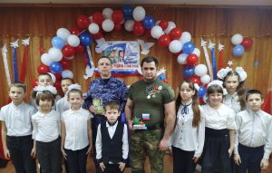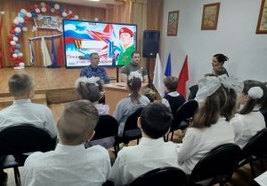 «Достойные Герои нашего времени!»- под таким девизом  прошёл патриотический  час для наших учащихся. В тёплой обстановке  ребята приветствовали нашего земляка, участника    специальной военной операции Михаила  Хачатуровича  Амирян  и командира отделения полиции ОВО по Староминскому  району Горбатюк Сергея Алексеевича. Школьники  с интересом слушали захватывающую историю  о личном, порою трудном и опасном    пути бойца. Наш земля , Герой поделился своими впечатлениями и переживаниями, рассказав о том, как проходят будни солдат на передовой, как оказался в госпитале после тяжёлого ранения, как в трудную минуту  товарищи поддерживают друг друга в суровых боях.  Его рассказы о службе, смелости и стойкости  российских солдат вдохновили  ребят и педагогов. Учащиеся  поздравили  гостей с наступающим праздником   Днём  Защитника Отечества ,вручили открытки , памятные сувениры  сделанные своими руками  и показали небольшой концерт, где читали стихи, пели песни патриотический направленности и  танцевали. Ребята показали гостям рисунки, письма, которые написали солдатам СВО, рассказали о том, что готовят посылки ко Дню Защитника Отечества. Такое общение лицом к лицу  с  Героями очень ценно, потому что на конкретном примере учащиеся  увидели, что настоящие Герои живут рядом, что мужество, храбрость, любовь к Родине – это качества настоящего мужчины не на словах , а на деле!