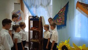 Любовь к России у каждого из нас начинается с любви к местам, где родился и живешь. И, конечно же, у каждого человека есть своя малая Родина. Для нас это- наша станица Староминская .Накануне Дня станицы наши ребята посетили выставочную экспозицию в РДКиС, приуроченную к празднику. Учащиеся окунулись в атмосферу кубанского казачьего быта, с интересом не только рассматривали, но и потрогали руками национальную одежду кубанских казаков на представленных куклах и макеты казачьего подворья: кубанскую печь, колодец, плетень, старинную кубанскую скрыню.