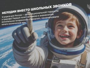 В апреле наша школа присоединилась к акции, приуроченной ко Дню космонавтики «Мелодии вместо звонков». На перемену ребят приглашают мелодии из песен, посвященных космосу.