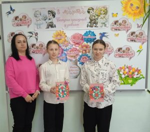 В преддверии 8 марта в нашей школе прошёл цикл мероприятий, приуроченный к весеннему празднику. Ребята под руководством воспитателей изготовили праздничные поздравительные открытки для мам и бабушек. Классные руководители на занятиях Разговоры о важном рассказали ребятам, об истории празднования Международного женского дня. Все классы и группы приняли активное участие в конкурсе рисунков «Идёт красавица весна!» и акции » Пятёрочка для мамочки и бабушки!»
