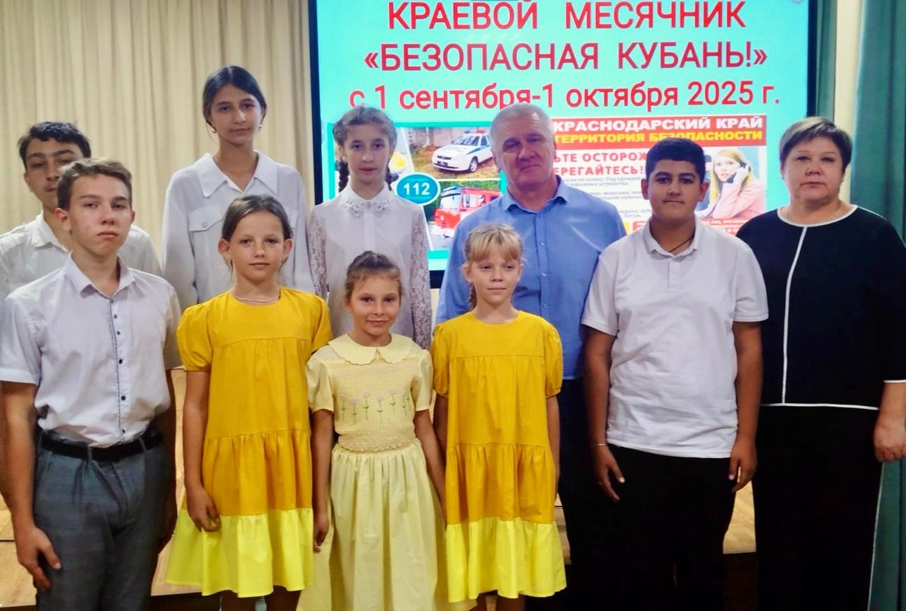 «Соблюдай правила безопасности при ЧС»- под таким девизом в рамках краевого месячника « Безопасная Кубань!» в нашей школе прошло совместное профилактическое мероприятие с начальником отдела ГО и ЧС по Староминскому…